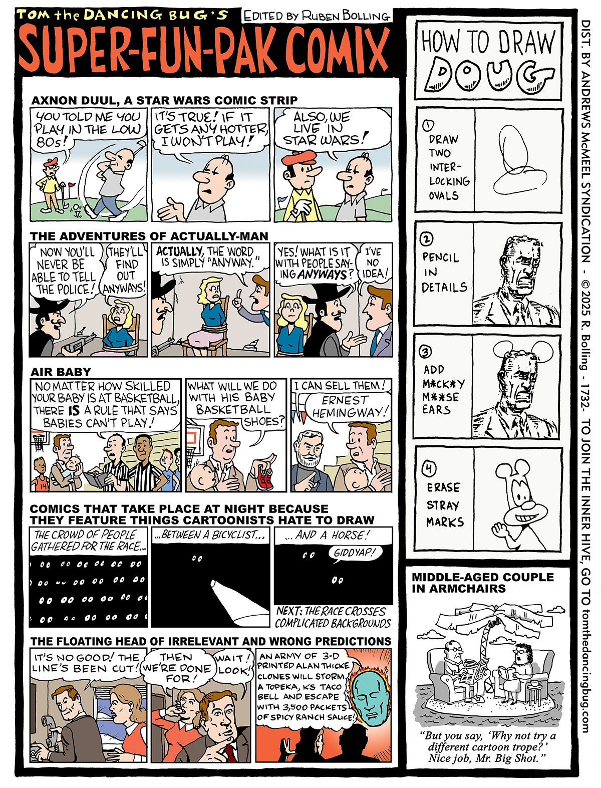 The Tom the Dancing Bug Review. Copyright 2025 Ruben Bolling.