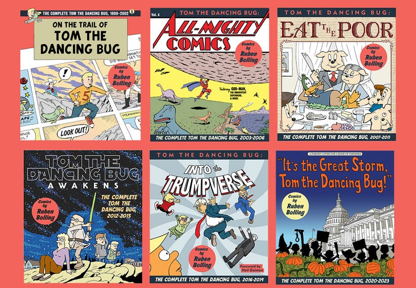 For two weeks only, I’m offering signed copies of Volumes 3-8 of The Complete Tom the Dancing Bug Library at a special price of $199.99 (for all six).