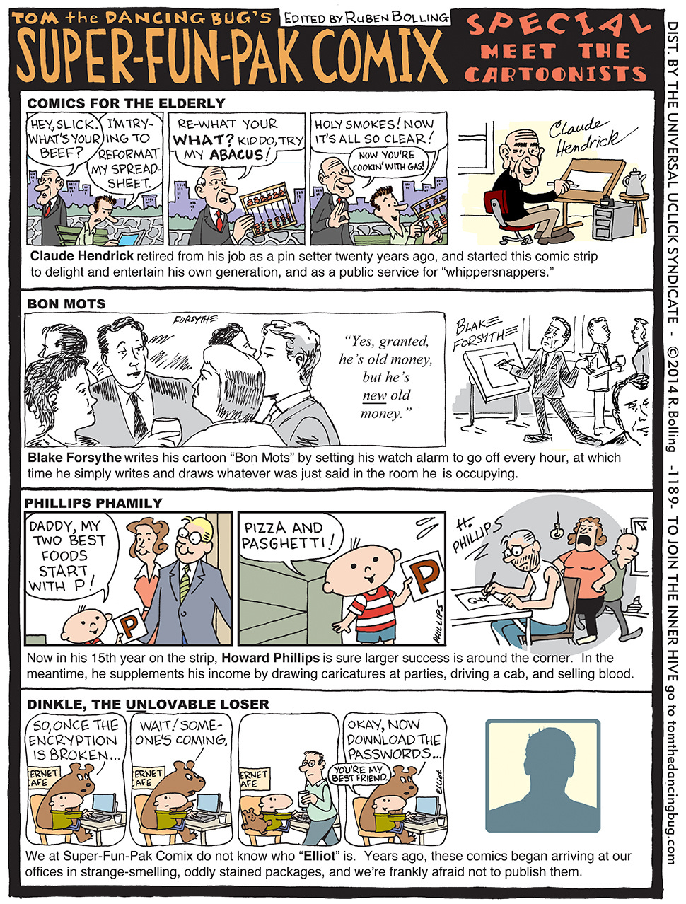 Tom the Dancing Bug is the wildly popular, groundbreaking comic strip that has won multiple awards, including the Herblock Prize, the Berryman Award, and a Robert F. Kennedy Journalism Award. Mark Hamill called it “wondrous, whimsical, and witty,” and Seth Meyers recently wrote, “The fact that Tom the bug can keep dancing in this day and age is a testament to Ruben Bolling’s skills as a cartoonist!”