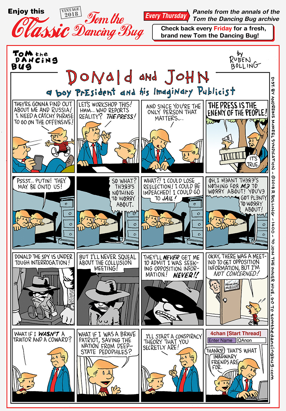 This week’s Classic Tom the Dancing Bug (published on GoComics yesterday) features Donald and John and the Russia “Hoax” (from 2018).