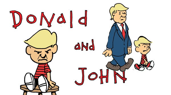 This week’s comic presents a Calvinesque and Hobbesian look at taking a mug shot. It’s Donald and John, the Boy Ex-President and His Imaginary Publicist!