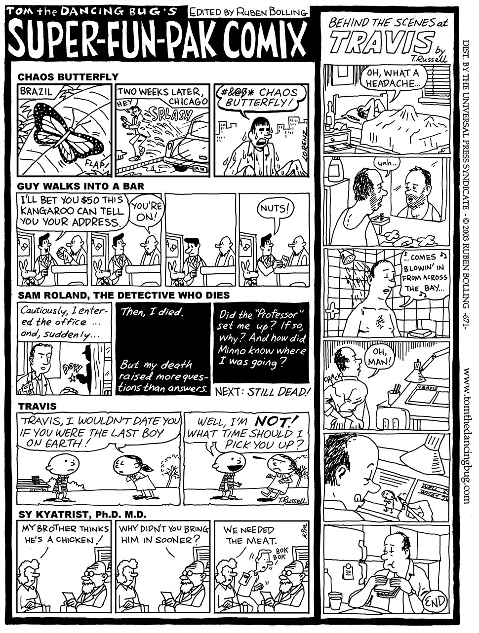 And the GoComics Super-Fun-Pak Comix page recently featured comics from this installment (from 2003), including the first appearance of Chaos Butterfly.