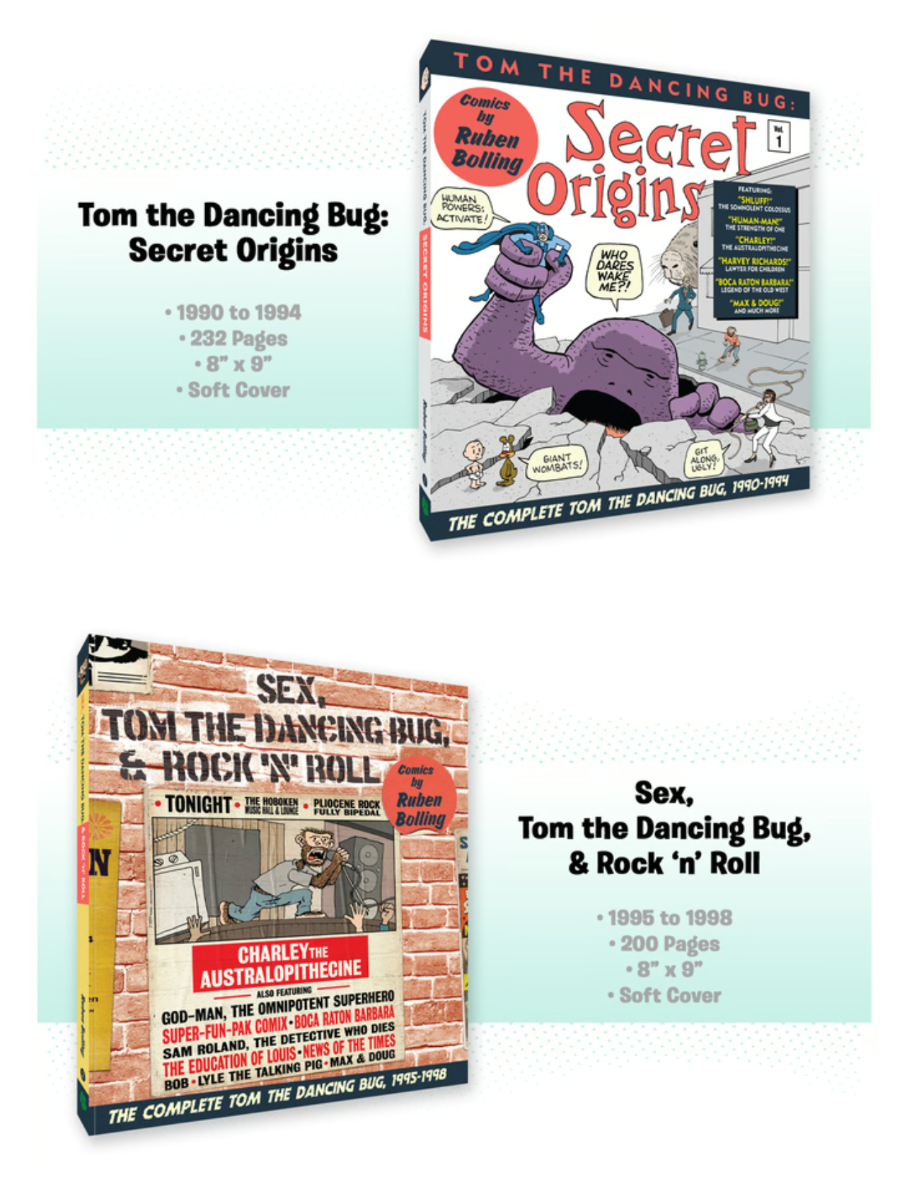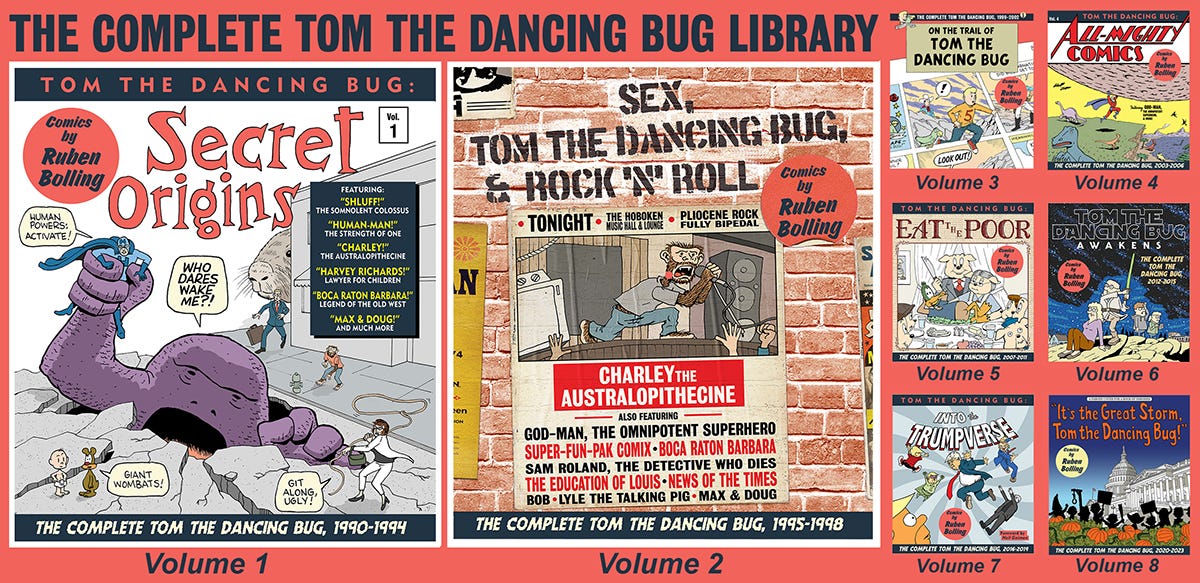 These comics in these books are very special to me -- they are the first nine years of Tom the Dancing Bug, from 1990-1998, when the comic strip really coalesced, many of the characters were introduced, and I built the comic’s readership for which I’m so grateful.