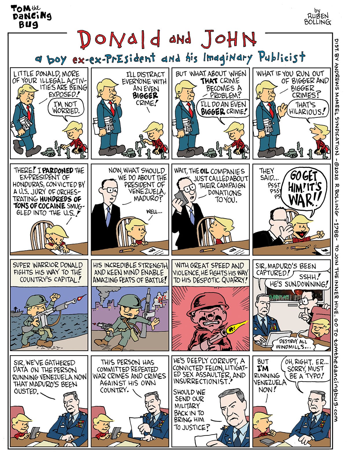 The Tom the Dancing Bug Review. Copyright 2026 Ruben Bolling.